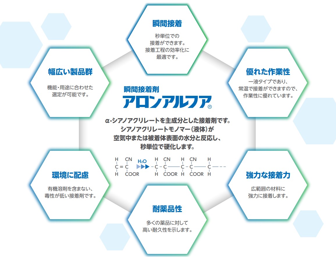 「アロンアルファ(略称:AA 瞬間接着剤)」**は、東亞合成(TOAGOSEI)を代表する製品の一つです。